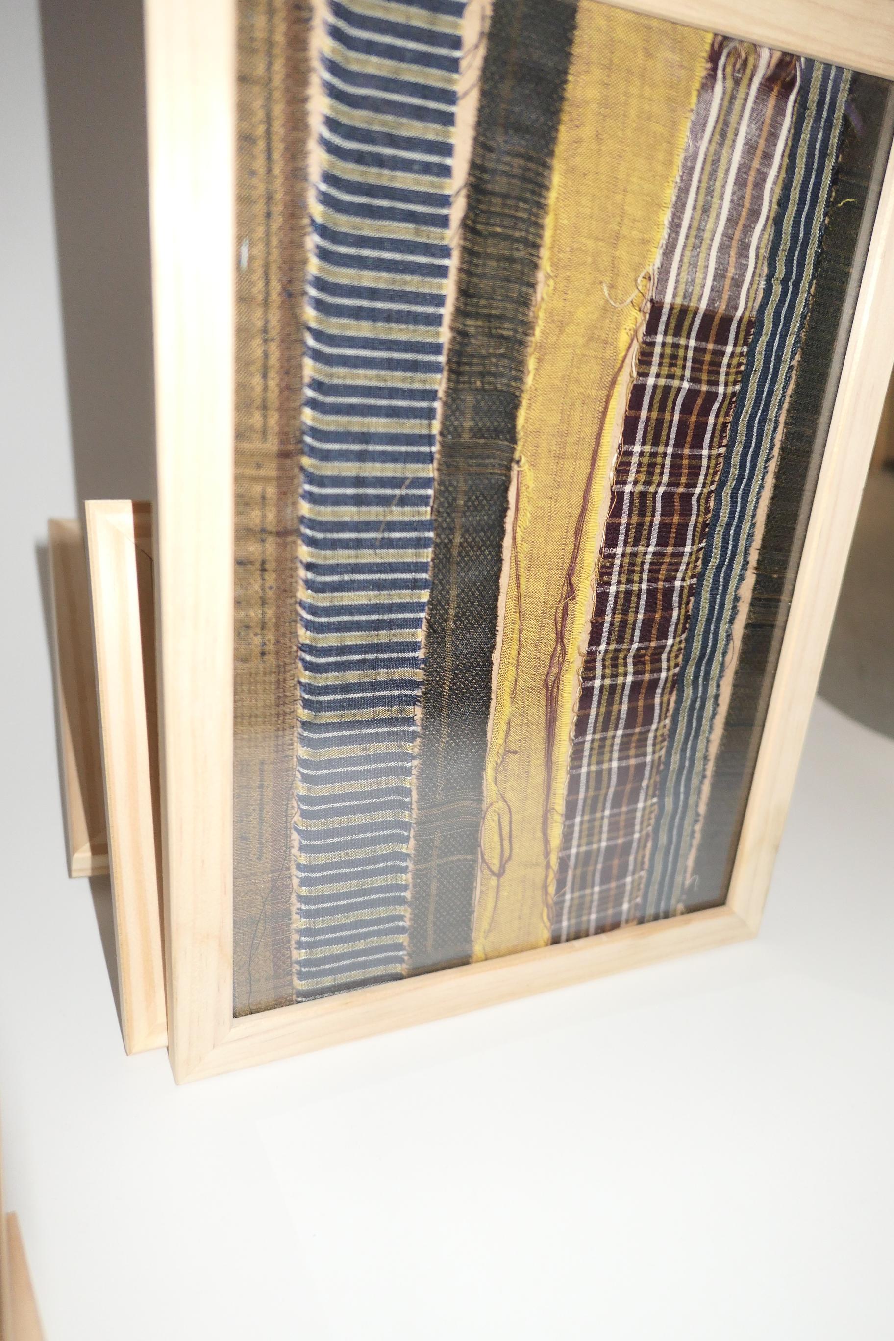 오래된 패브릭 위 사시코 작업을 하여 제작되었습니다.